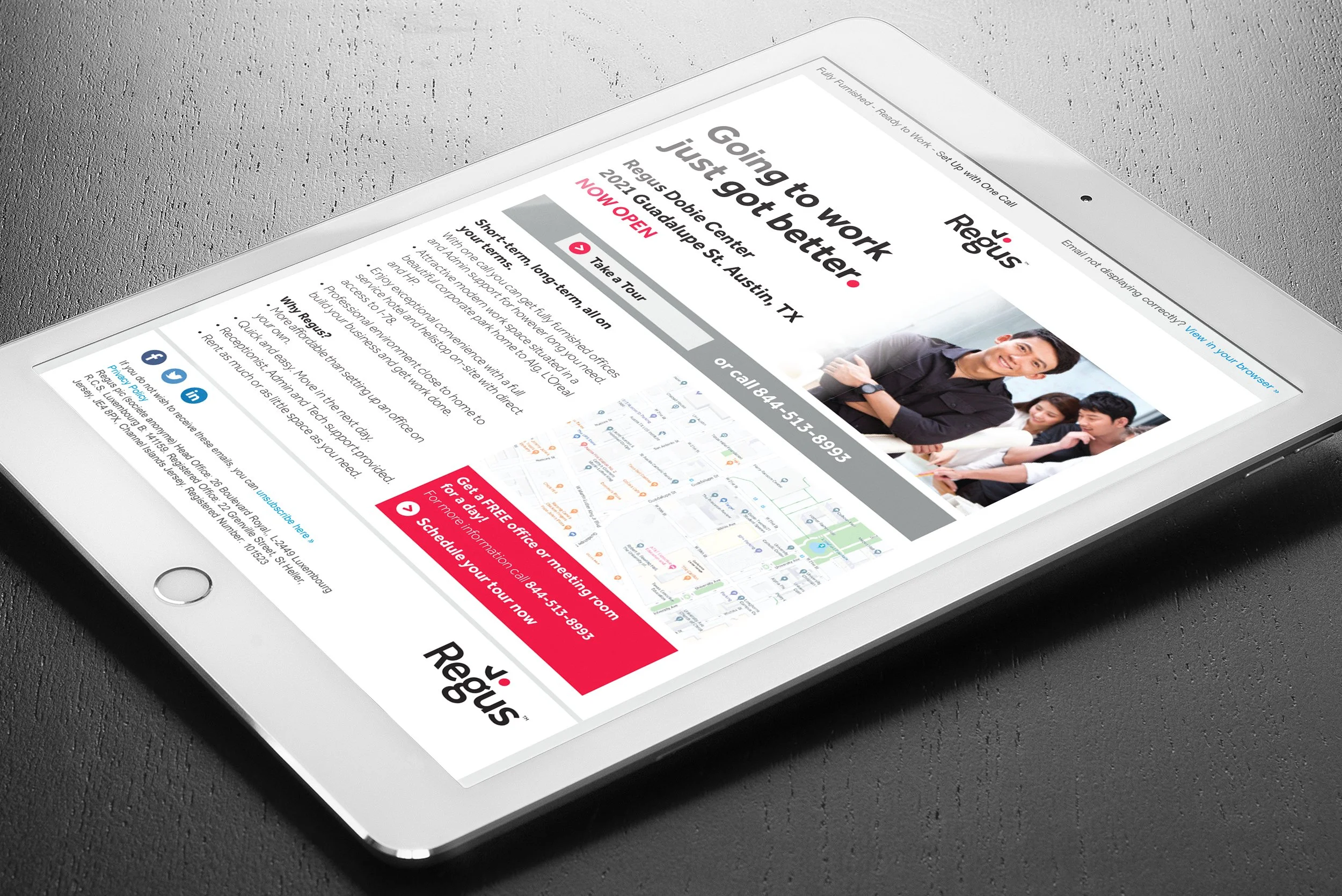 RegusDesign, image retouching and illustration for sales brochure, emails and environmental graphics.